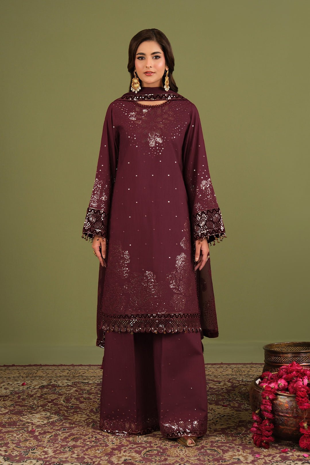 An embroidered silk front executed with refined front-kali construction creates a fluid yet composed silhouette. Raw silk sleeves finished with intricate embroidered borders, introduce depth and textural contrast, while embroidered raw silk trousers complete the look with a polished, artisanal finish.